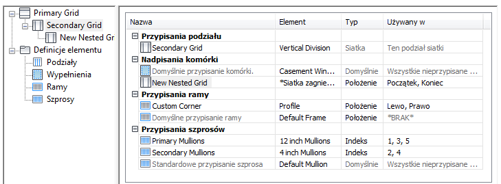 Do listy siatek w lewym okienku zostanie dodana nowa siatka. Jeśli edytowana jest siatka podstawowa, nowa siatka zostanie dodana na poziomie drugorzędnym. W przypadku edytowania siatki na poziomie drugorzędnym nowa siatka zostanie umieszczona na poziomie trzeciorzędnym itd.