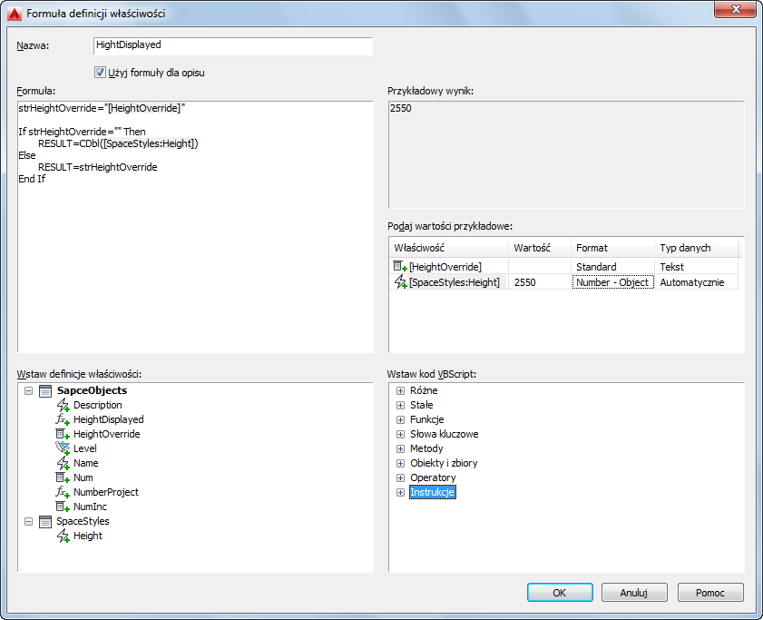 Poddano edycji definicję właściwości formuły HeightDisplayed na arkuszu Formuła definicji właściwości