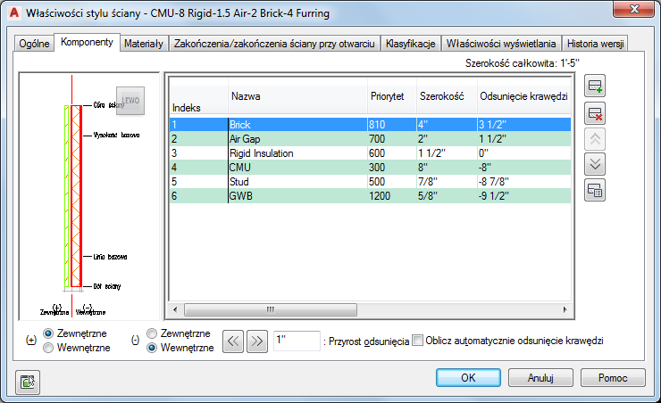 - W definicji stylu ściany należy określić stronę wewnętrzną i zewnętrzną ściany, aby umożliwić bardziej dokładne wymiarowanie AEC.