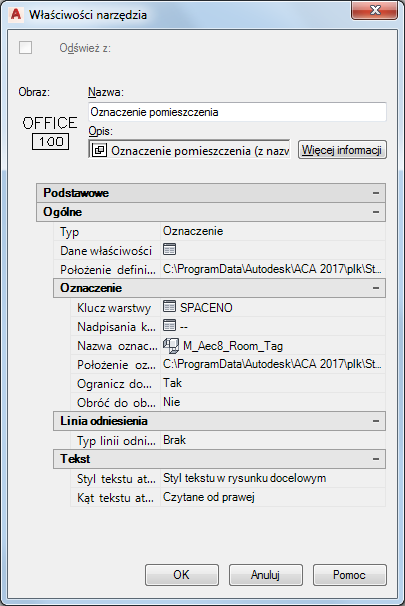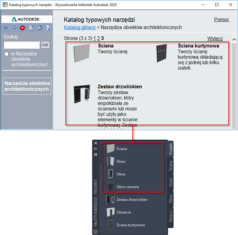 Procedura ta umożliwia połączenie narzędzia z katalogu w Wyszukiwarce bibliotek z paletą narzędzi w programie AutoCAD Architecture toolset.