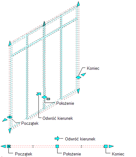 Wyświetlanie uchwytów początku, końca, położenia i odwracania kierunku ściany