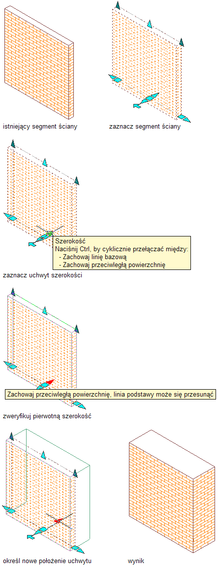 2. Wybierz uchwyt Szerokość i naciśnij klawisz Ctrl, aby zachować położenie przeciwległej powierzchni ściany podczas zmiany jej szerokości.