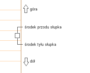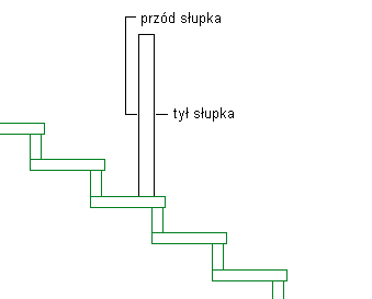 Określ orientację słupków w odniesieniu do kierunku biegu schodów w górę i w dół w widoku elewacji w sposób pokazany na poniższym rysunku: