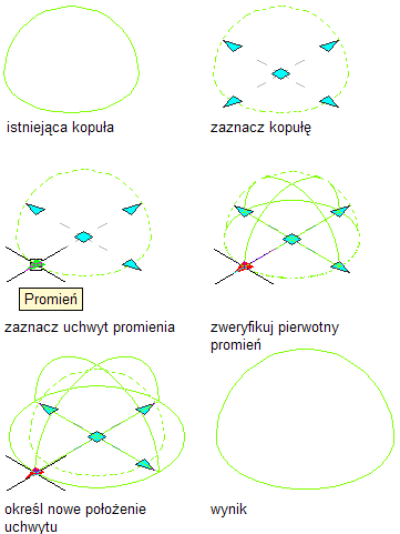 Edycja elementu bryłowego typu kopuła za pomocą uchwytu promienia