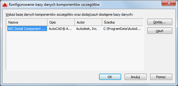 - W oknie dialogowym konfigurowania baz danych komponentów detali kliknij Dodaj.