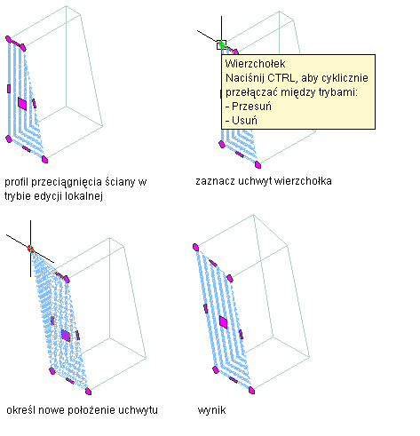 Przesuwanie wierzchołka przeciągnięcia ściany do edycji lokalnej