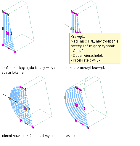 Odsuwanie krawędzi profilu przeciągnięcia ściany do edycji lokalnej
