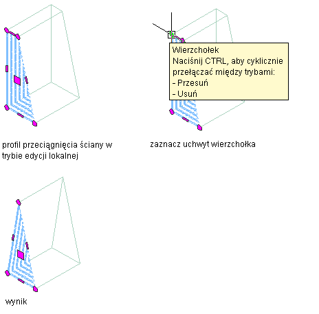 Aby dodać wierzchołek do krawędzi profilu przeciągnięcia ściany w celu edycji lokalnej
