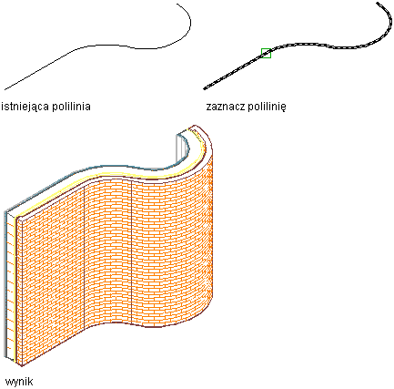 określić linię bazową ściany z istniejącej na rysunku linii lub łuku