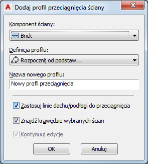 Procedura ta służy do tworzenia niestandardowej ściany lub jej komponentu poprzez zdefiniowanie kształtu z profilu.