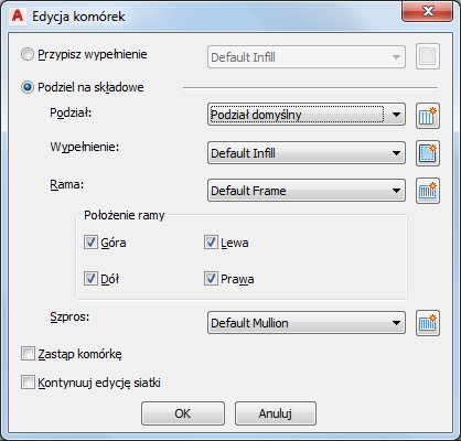 wybrać definicję szprosu dla siatki utworzonej po podzieleniu komórki na składowe zaznacz żądaną definicję szprosu.