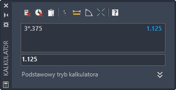 Szczególnie przydatną funkcją jest polecenie Wklej wartość, które umożliwia skopiowanie aktualnego wyniku obliczeń do monitu w oknie wiersza polecenia. Może to być obliczona wartość promienia, odległości lub odsunięcia.