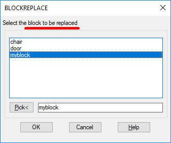 Polecenie BLOCKREPLACE wyszukuje w całym rysunku określony blok i zastępuje go innym określonym blokiem. Następnie można użyć polecenia USUŃ, aby usunąć z rysunku definicje bloków, do których nie ma odniesień.