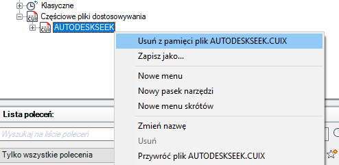 Zostaną wyświetlone wszystkie częściowe pliki CUIx wczytane w głównym pliku CUIx.