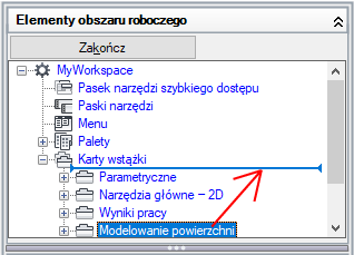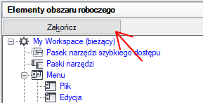 - Na panelu Zawartość obszaru roboczego kliknij węzeł drzewa Pasek narzędzi szybkiego dostępu.