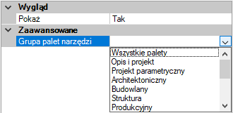 - W polu Grupa palet narzędzi wybierz jedną z dostępnych grup palet narzędzi, aby powiązać ją z kartą wstążki.