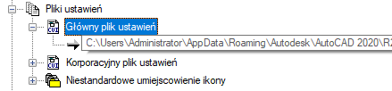 - W Eksploratorze Windows lub Eksploratorze plików wybierz <litera dysku>:\Users\<nazwa profilu użytkownika>\AppData\Roaming\Autodesk\<nazwa produktu>\<numer wersji>\<język>\support\<nazwa pliku ustawień>.cuix.