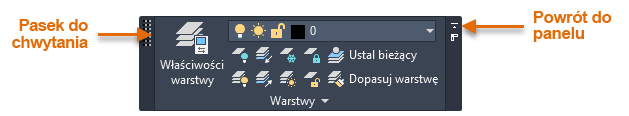 Przesuń wskaźnik na panel Warstwy, co umożliwi zmianę położenia panelu za pomocą uchwytu, lub kliknij przycisk Powrót do panelu, a panel powróci do karty wstążki, do której należy.