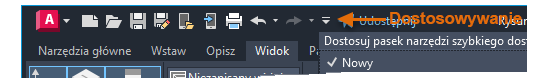 W tym ćwiczeniu do paska narzędzi szybkiego dostępu zostaną dodane narzędzie Wydruk wsadowy i lista rozwijana Warstwy, natomiast usunięte zostanie narzędzie Wydruk.