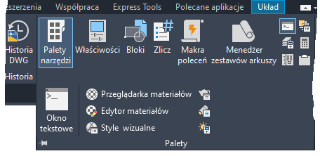 Na karcie Widok powinny być teraz podświetlone paleta Właściwości i przyciski Palety narzędzi na wstążce.