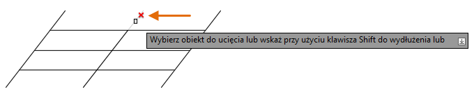 Jeśli polecenie WYDŁUŻ zostało zakończone, w wierszu polecenia wprowadź polecenie utnij.