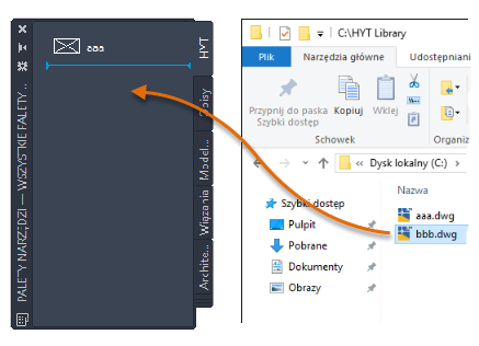 Otwórz folder Biblioteka HYT w Eksploratorze plików. Następnie przeciągnij oba pliki rysunków do palety HYT.