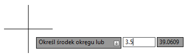 Bezwzględna wartość współrzędnych wynosząca 3.5,5 zostanie użyta jako punkt środkowy okręgu, a następny monit polecenia OKRĄG zostanie wyświetlony w etykiecie wprowadzania dynamicznego. Uwaga: Zamiast naciskać klawisz Enter, aby określić wartość współrzędnej 2D, można dodać przecinek, a następnie wprowadzić liczbę dotyczącą wartości współrzędnej Z.