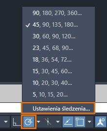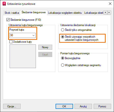 Opcję Lokalizacja względem obiektu można również włączać i wyłączać klawiszem skrótu F3, opcję Śledzenie lokalizacji względem obiektu klawiszem F11, a opcję Śledzenie biegunowe klawiszem F10.