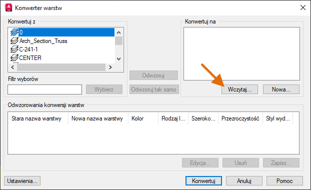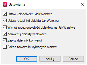Konwersja warstw (tylko AutoCAD)