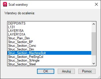 9. W oknie dialogowym Scalenie warstw wybierz z listy pozycję Struc_Section_MachineBolt i kliknij przycisk OK.