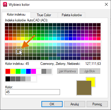 4. W oknie dialogowym Wybierz kolor wybierz próbkę koloru 45 i kliknij przycisk OK.
