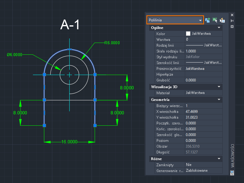 7. Wypróbujmy inny obiekt. Zaznacz polilinię.