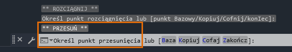 Zwróć uwagę, że wiersz polecenia wskazuje teraz aktywny tryb przesuwania.
