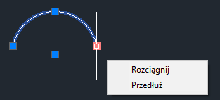 Spróbuj wykonać te same czynności w przypadku łuków, okręgów i polilinii, wybierając różne uchwyty różnych obiektów.