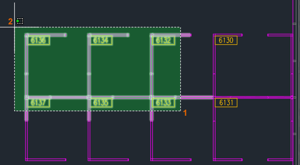 Zaznaczone (PICKADD=0) — przy każdym wyborze obiektów tworzony jest nowy zbiór wskazań. Jeśli podczas wybierania zostanie przytrzymany klawisz Shift, obiekty już znajdujące się w zbiorze wskazań zostaną usunięte, a dodane zostaną nowe obiekty.
