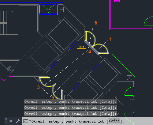 Określ punkty, aby zdefiniować krawędź przechodzącą przez drzwi.