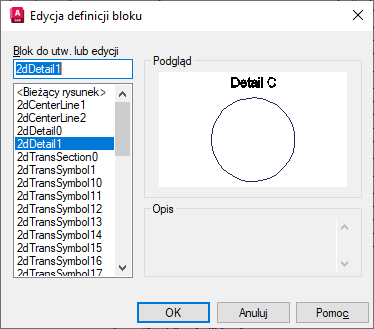 Po zamknięciu Edytora bloku geometria pod tekstem szczegółu C nie będzie już zapewne widoczna.