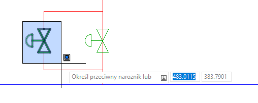 9. Po utworzeniu przykrycia wybierzmy razem symbol zaworu oraz obiekt przykrycia i zobaczmy, w jaki sposób przykrycie maskuje linię pod nim podczas przesuwania wybranych obiektów wzdłuż linii.