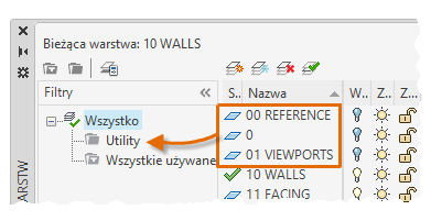 Praca z listą warstw w oknie Menedżer właściwości warstw