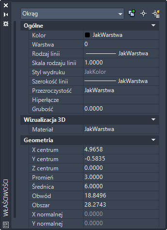 Podczas oglądania właściwości obiektów programu AutoCAD w programie AutoCAD LT niektóre z nich mogą być niedostępne.