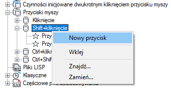 kliknij znak plus (+) obok węzła Przyciski myszy, aby rozwinąć listę.