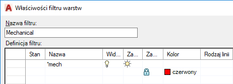 WARSTWA (polecenie) Wyszukiwanie : Nowy filtr właściwości
