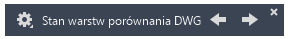 Pasek narzędzi Ujęcie umieszczony w aplikacji Porównaj DWG zawiera kontrolki do sterowania ustawieniami wyświetlania oraz do przybliżania kolejnych zestawów zmian. Jest wyświetlany zawsze po otwarciu rysunku ujęcia.