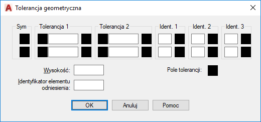 Po wybraniu charakterystycznych symboli geometrycznych zamykane jest okno dialogowe Tolerancja geometryczna i wyświetlany poniższy monit: