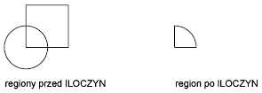 Przy użyciu polecenia ILOCZYN można utworzyć obiekt w postaci regionu 2D na podstawie obszaru, w którym nakładają co najmniej dwa istniejące regiony. Można wybrać tylko regiony do użycia z poleceniem ILOCZYN.
