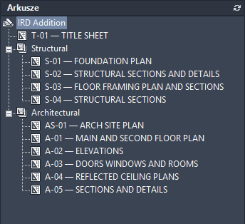 Za pomocą Menedżera zestawów arkuszy można zarządzać wieloma rysunkami jako zestawami arkuszy: