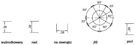 Steruje położeniem tekstu wymiarowego wzdłuż linii wymiarowej, w odniesieniu do linii pomocniczych. (DIMJUST — zmienna systemowa)