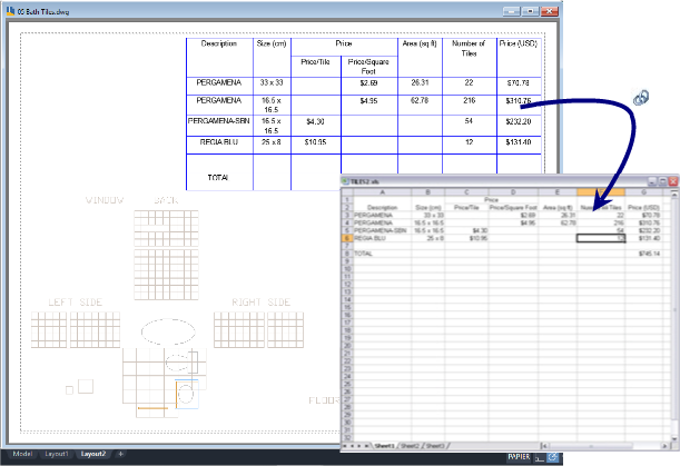 Jeśli połączony arkusz kalkulacyjny został zmieniony, na przykład w wyniku dodania wiersza lub kolumny, tabela na rysunku może zostać odpowiednio zaktualizowana przy użyciu polecenia AKTUALŁĄCZEDANYCH. Analogicznie, jeśli zostały wprowadzone do tabeli w rysunku, wówczas można zaktualizować połączony arkusz kalkulacyjny, korzystając z tego samego polecenia.