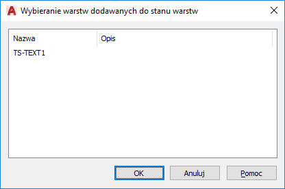 Wyświetla nazwę i opis warstw, które nie zostały dodane do stanu warstw. Wybierz warstwy, które chcesz dodać, a następnie kliknij przycisk OK.