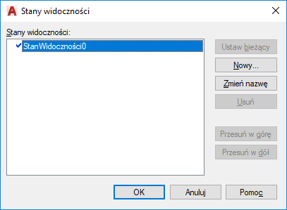 Ustawia wybrany stan widoczności jako bieżący stan do wyświetlenia w Edytorze bloku. Nie zmienia domyślnego stanu widoczności, który jest wyświetlany podczas wstawiania bloku do rysunku, ani nie zmienia wyświetlanego stanu widoczności odniesień do bloków, które są już wstawione i edytowane w rysunku.